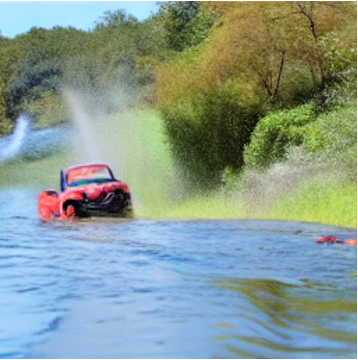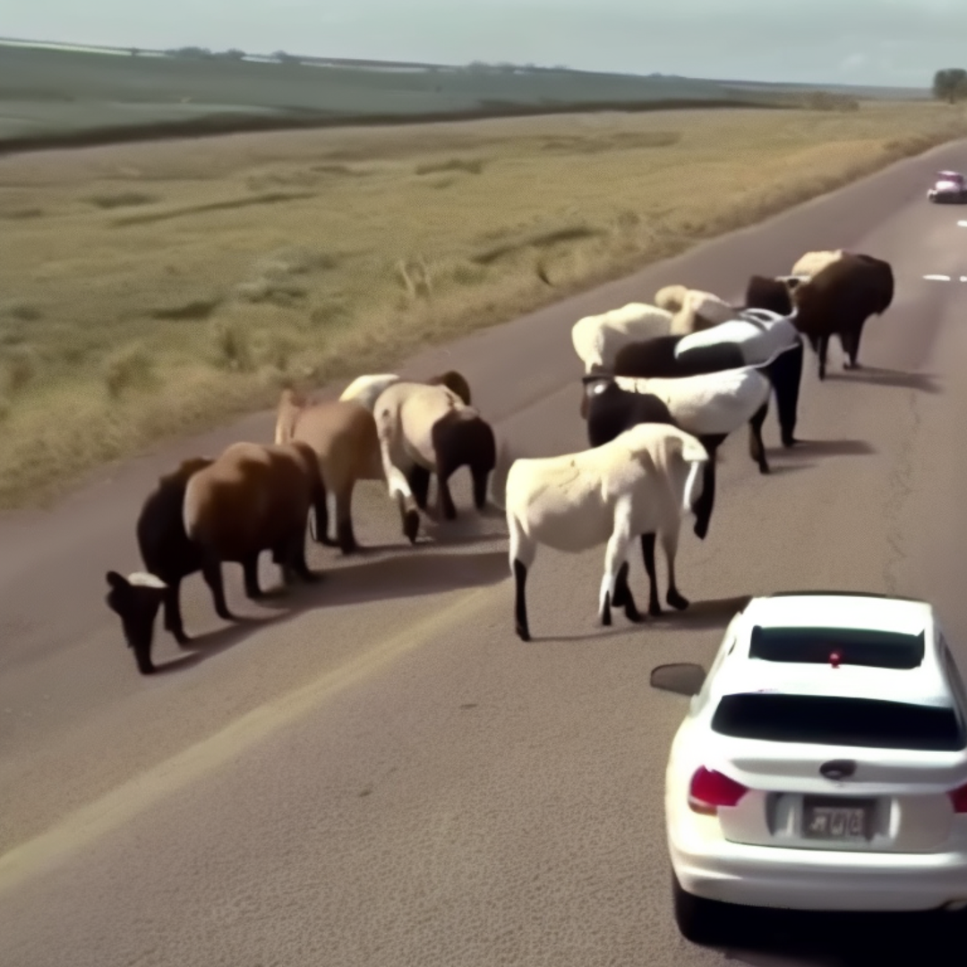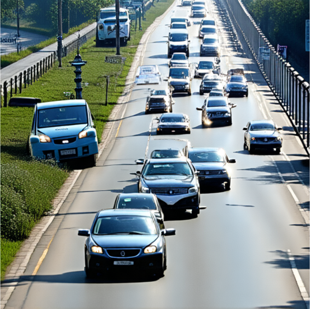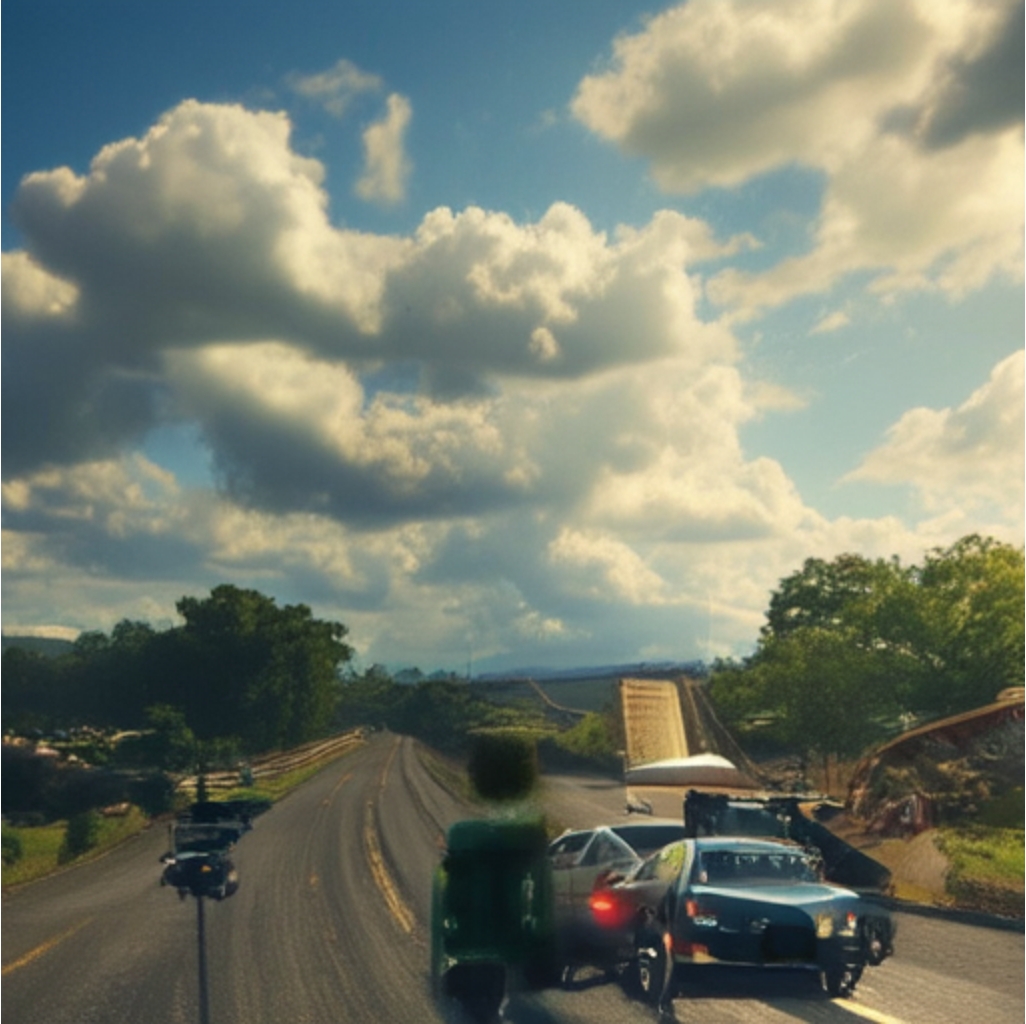 "A car speeding down a highway."+ |