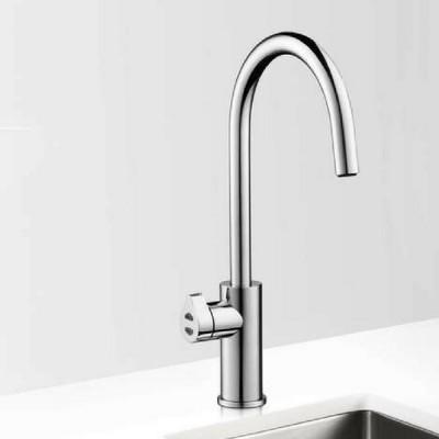 A kitchen sink with a faucet and stainless steel faucet. |