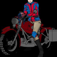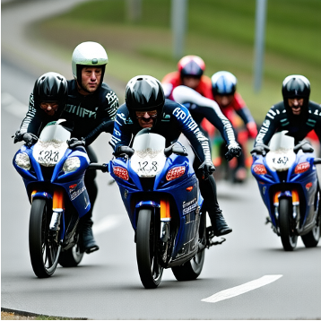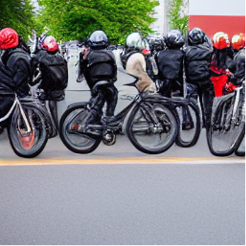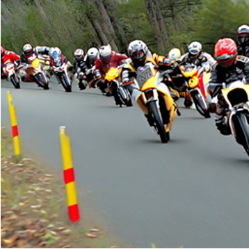 "A group of biker turning into a curb." |