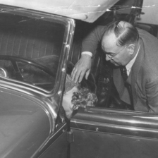 An older man in a suit and tie on a bouton. |