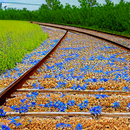 "The train tracks are lined with bluebonnets." |