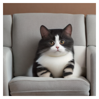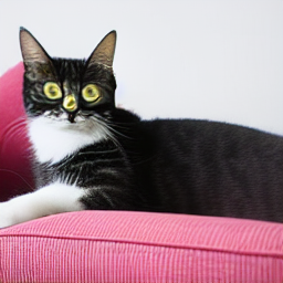 "A cat is sitting on the sofa." |