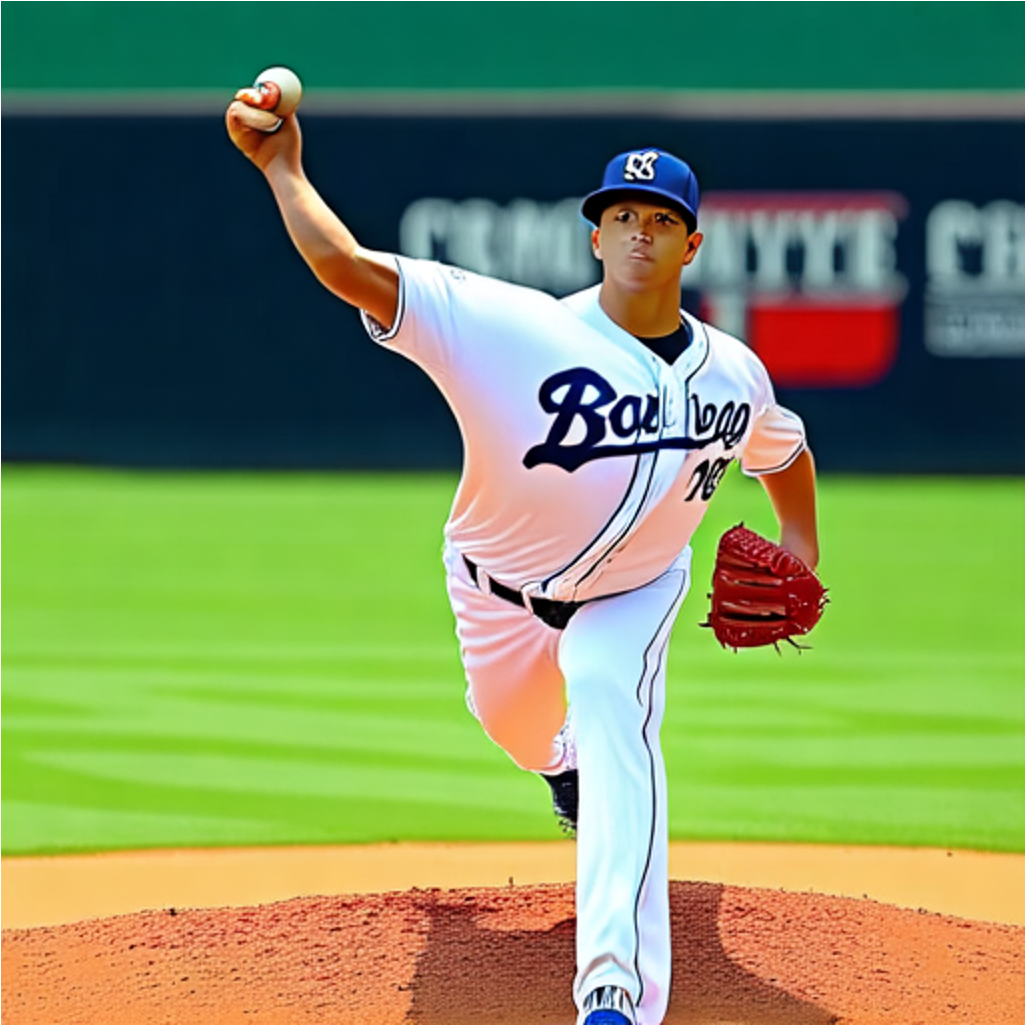 "The baseball player is throwing the ball hard." |