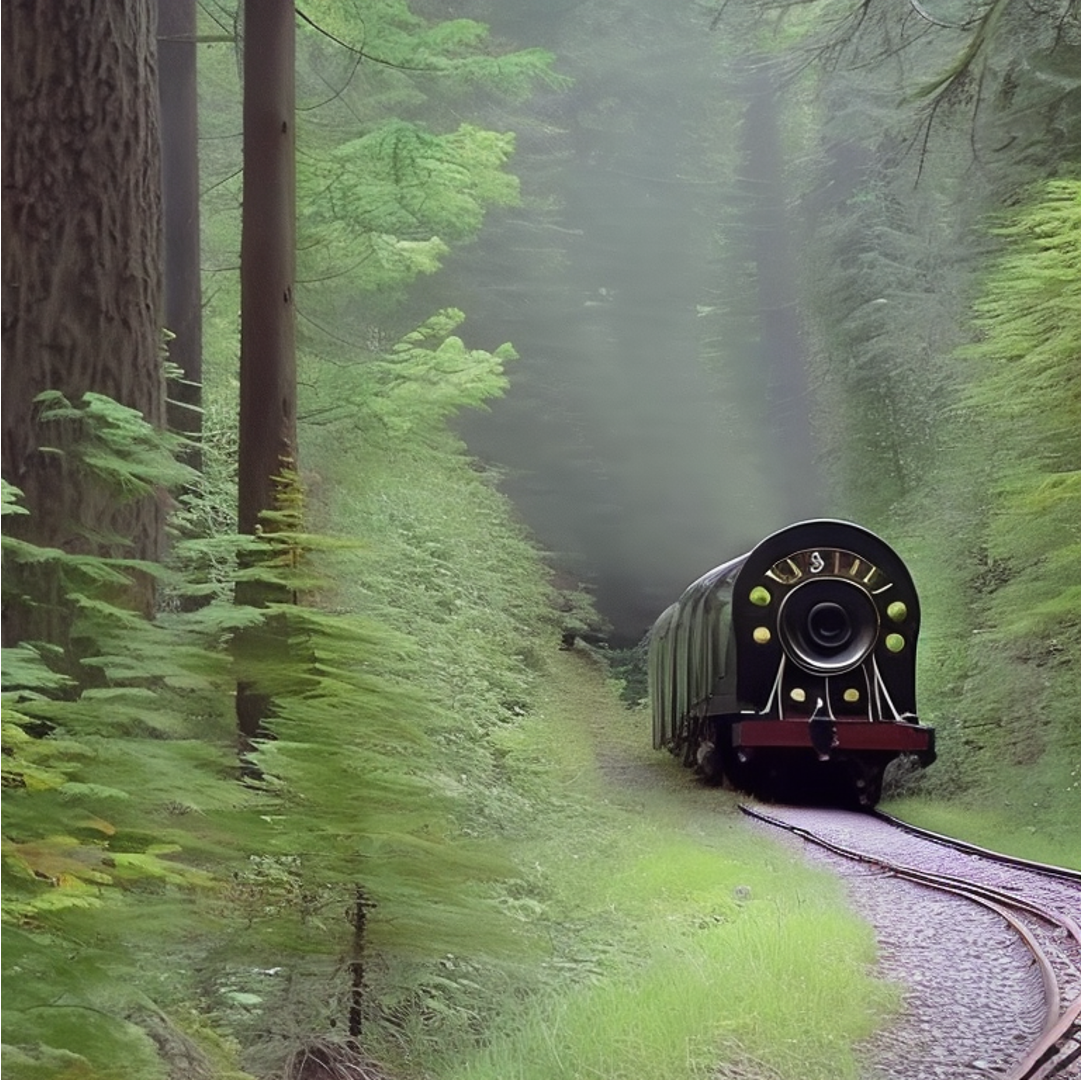 "A misty forest path."+ |