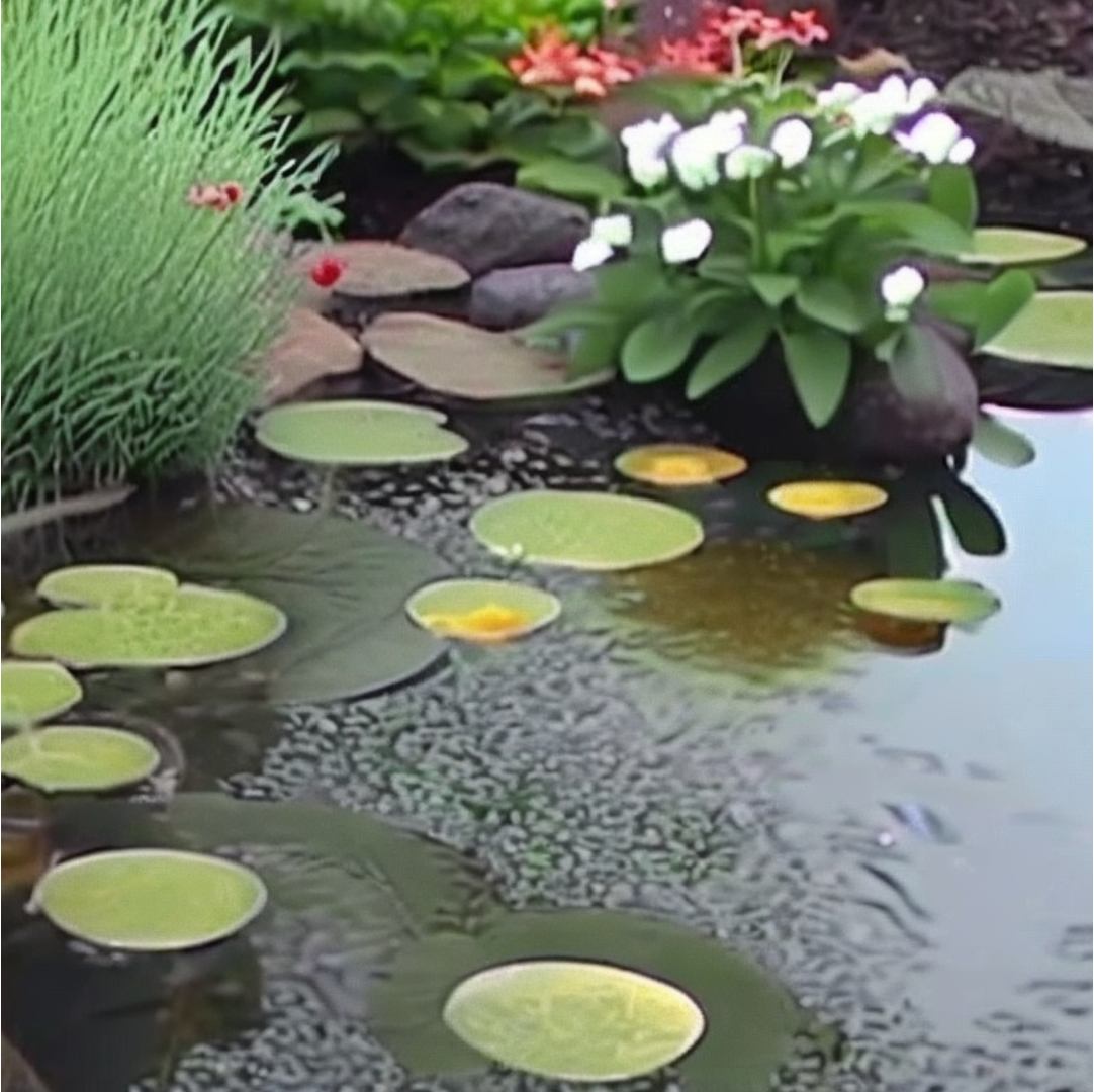 "A garden with flowers"+ |