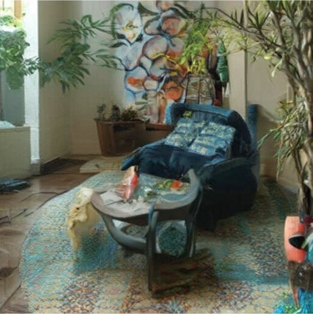 "A living room with a carpet."+ |